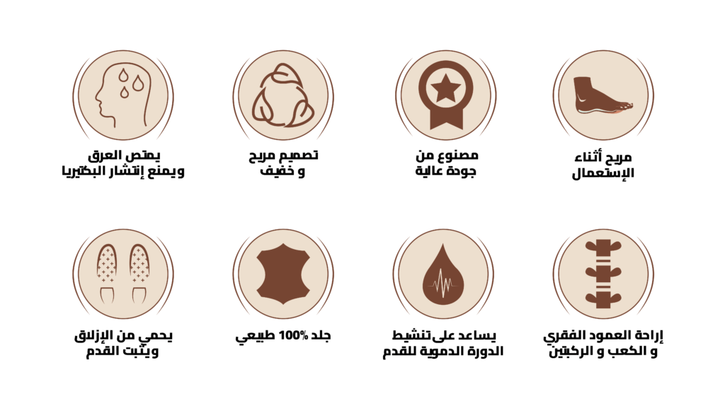 معظم آلام أسفل الظهر والركبة تكون بسبب ارتداء الأحذية العادية الغير مريحة لهذا وفرنا لكم الصابو الطبي الذي يوفر الراحة اللازمة أثناء العمل أو المشي خاصة لأصحاب المهن التي تتطلب الوقوف لفترات طويلة ، تم تصميمه ودراسته خصيصًا ليتكيف مع جميع أشكال القدم ، وقد تم حساب ارتفاعه لتعزيز المشي وتخفيف الألم