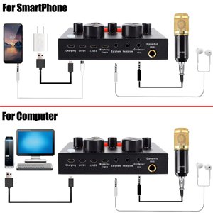 مجهزة بميكروفون BM-800 ، وحامل للصدمات ، وفلتر بوب ، وحامل ذراع تعليق قابل للتعديل ، وغطاء رغوي مضاد للصدمات ، وكابل طاقة ، وبطاقة صوت.
